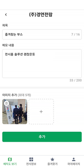 • 2. 즐겨찾기 리스트에서 방문한 부스 메모 상세히 기록 (제목, 메모내용, 이미지)